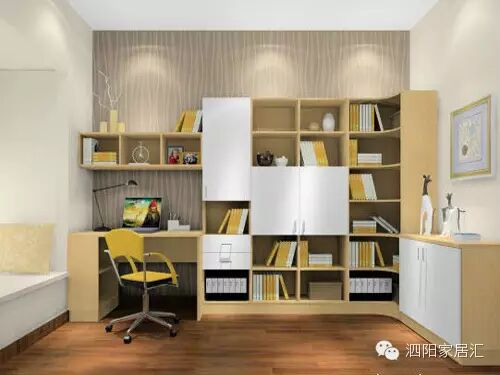 在空间布置上,书房主要的家具是写字台、书架、书柜及坐椅或沙发。书架的放置并没有一定的准则。