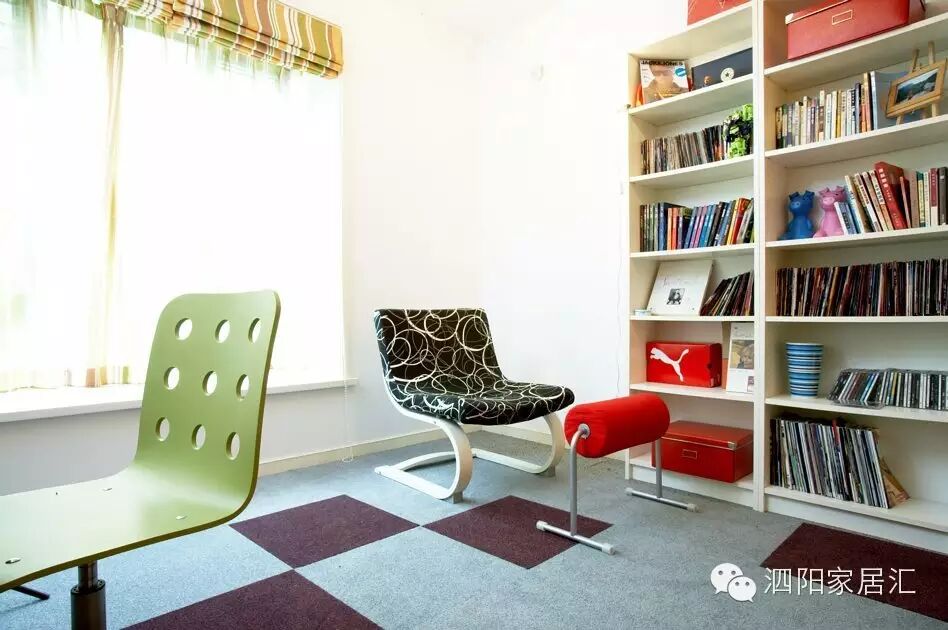 整个书房色调统一,简洁,能使在房间内看书的人干到平静舒适。