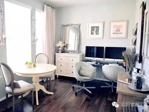 这样的书房适合每一个内心住着公主的女孩子,田园风搭配浅灰色的座椅,娴静淡雅。