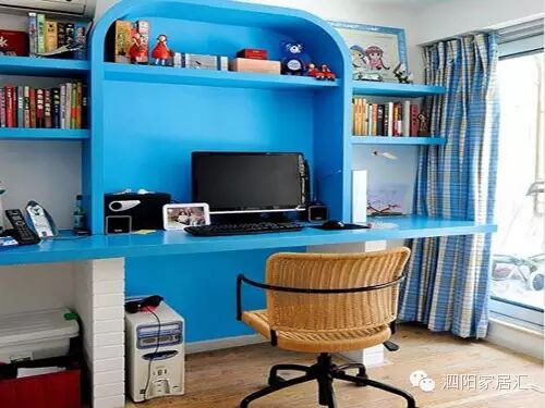 以蓝色为主色调的书房,蓝色代表沉稳,搭配编织的座椅,有一番别样的风格。