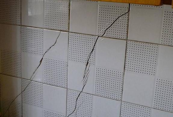 ▲尖锐物品的撞击极易造成瓷砖开裂