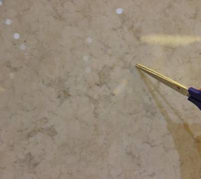 ▲剪刀等金属工具的刮擦,很容易造成瓷砖划痕