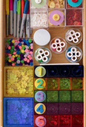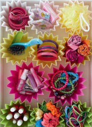 实用道具:找不到这样漂亮的盒子,没关系,你会折小纸盒的话,可以买厚一些的卡纸折好后装满抽屉,同样会是这效果;温馨提示,超市里五颜六色的塑料小碗也可以替代。