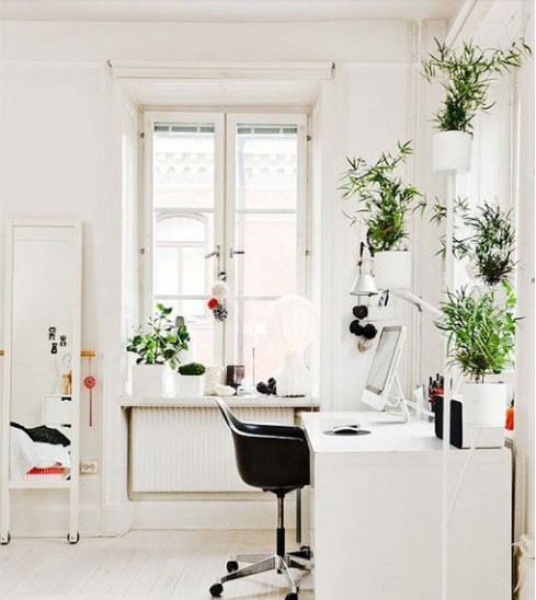 洁白的墙、质感的木桌,阳光洒满的窗边,这样的角落很北欧很清新。而这样的美当然少不了“自然”的点缀。在窗边白墙,很轻松的设立白色搁架,将所爱的小盆栽随意安置,纤细青绿的植物细叶,让明媚的角落更为生动活泼。