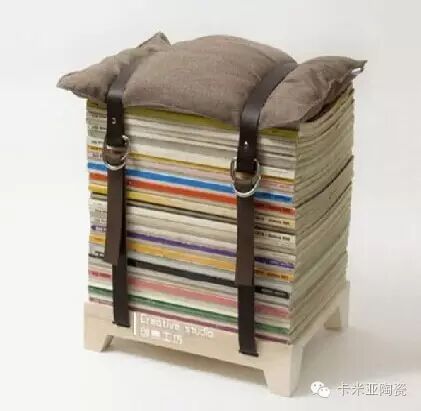 爱看书的朋友家里的杂志,多了就会积攒上一大摞,占有了很多空间。这时不妨在一叠书上加个底座,再加个垫子,用一个随时可以调节高低的皮带栓紧,这样就可以当作凳子用啦~!