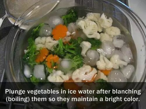 把蔬菜煮熟后放入冰水中,