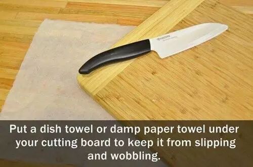 在切菜板下面放一个洗碗巾或者湿抹布,