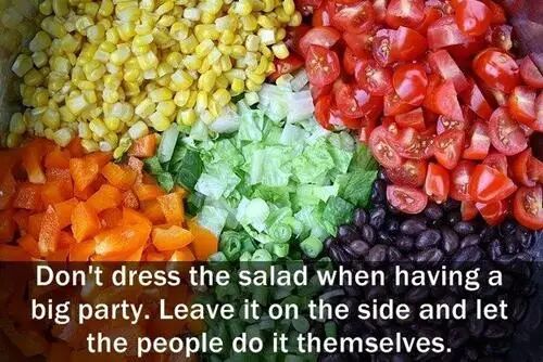 在举行大的聚会时,不要把沙拉配好,