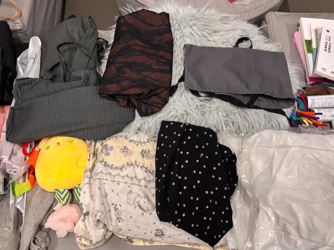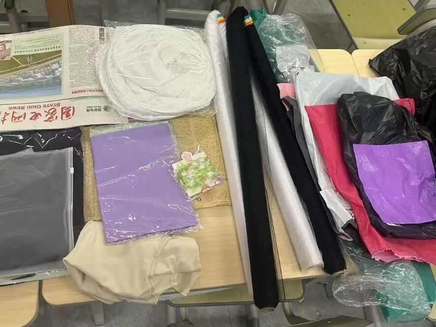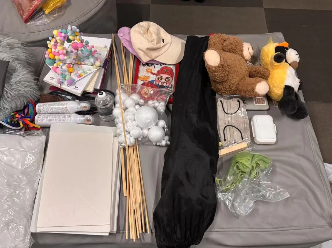收集的捐赠物资品类丰富、形式多元:既有设计作业剩余的彩纸、布料、颜料等创作材料,款式过时的毛衣、牛仔布等废旧织物,也有闲置的生活物件。