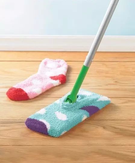 如果家里是木质地板,每天打扫一遍还是很有必要的。你可以将旧袜子套在拖把上,拖地时很方便就把脏污清理掉了。