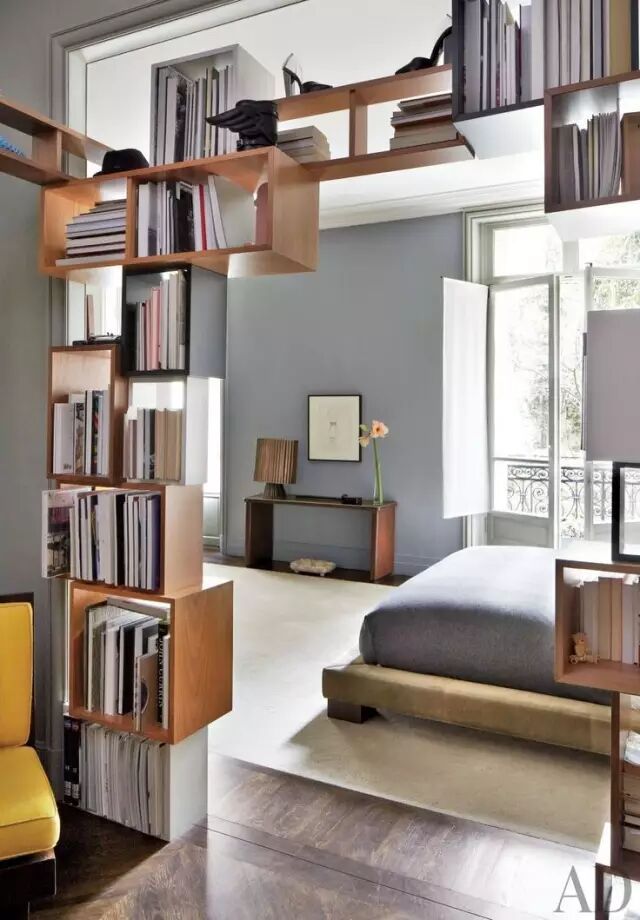 如果不习惯窄桌面,也可以选择台面大一些宽阔一些的墙桌,当然,装订在墙的书架依旧非常必要。