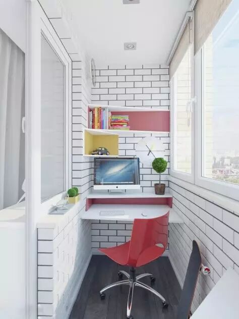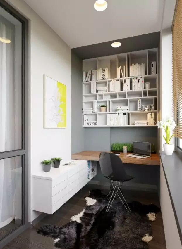 阳台式书房的真正含义是指,书房的空间大小和阳台有些接近。事实上,有很多阳台改装的实例,成功地把小空间布置成书房或者卧室的模样,虽然空间不大,但非常温馨。