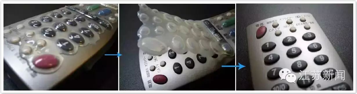 对于很难清理的遥控器,也可以用这种方法。先把遥控器电池取下,涂一层厚厚的白胶,再等白胶干透明之后取下来。遥控器整个又新又干净!