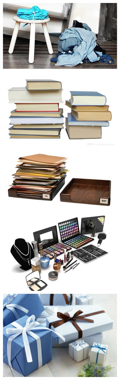 不要怕麻烦。把家里这一类的物品全都集中到一个地方堆着。比如整理衣服的时候,所有的衣服全拿出来堆在床上整理。
