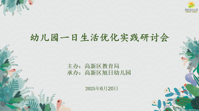 为深入贯彻《3-6岁儿童学习与发展指南》和《幼儿园保育教育质量评估指南》精神,聚焦“构建幼儿为本的一日生活”这一核心目标,切实提升教师专业素养,推动全区学前教育向更高质量发展迈进,6月20日上午,由高新区教育局主办,旭日幼儿园承办的“幼儿园一日生活优化实践研讨会”圆满召开。