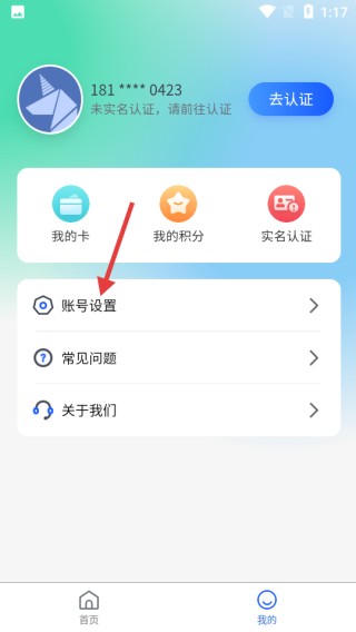 2、在个人中心页,找到并点击【账号设置】,进入账号设置界面。