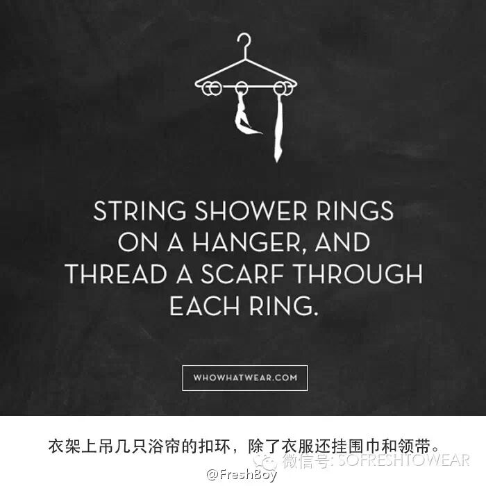 九、衣架上吊几只浴帘的扣环,除了衣服还挂围巾和领带。