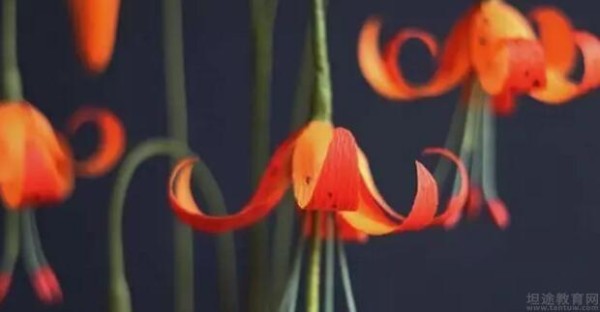 重复上面的步骤多做一些花朵,最后搭配花器,一个纸质老虎百合DIY的作品就完成了。