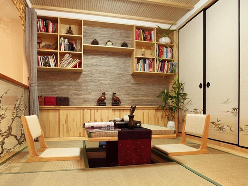 在中小户型里,将某间房间设计成榻榻米形式,可以说是最能节省空间、扩大房间功能的方法。制作榻榻米房间时,可将房间地面抬高,并在地台内设计若干个上拉门式或侧拉门式储物柜,可存放大量的被褥及其他杂物,节省出许多储物空间;同时,榻榻米可以承担品茶、聊天、休闲、阅读、睡眠等多种功能,特别是对于中小户型业主来说,具有极为强大的“夜间亲朋留宿”的功用。