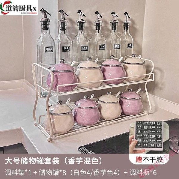 家小优柴米油盐酱醋茶套装家用全套调味罐轻奢厨房陶瓷调料盒罐组合 香芋紫奶咖色混搭15件套调味罐