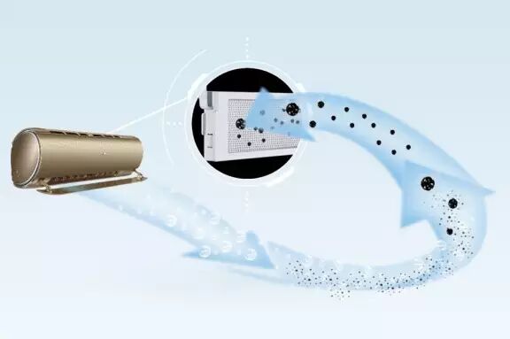 ◆ 劲铂空调采用IFD高效集尘除PM2.5,运行两小时PM2.5去除率达99.5%以上,同时释放的负离子,起到适度的保健和抑菌作用,让您在空调房内也可享受到如雨后般清新的好空气。