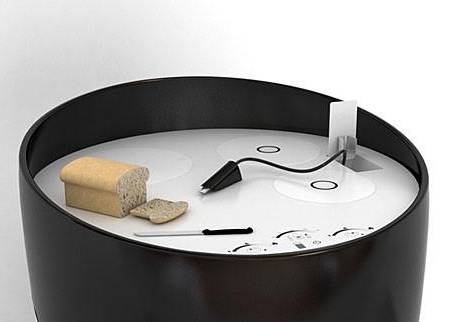 ◆概念食物分类冰箱让人眼前一亮,它的外观看起来完全不像迷你电冰箱,反倒像是个便当盒。开启冰箱门后,它就会将食物吞下去,然后依照食物的五大类将其装入不同的隔间中。概念面包机