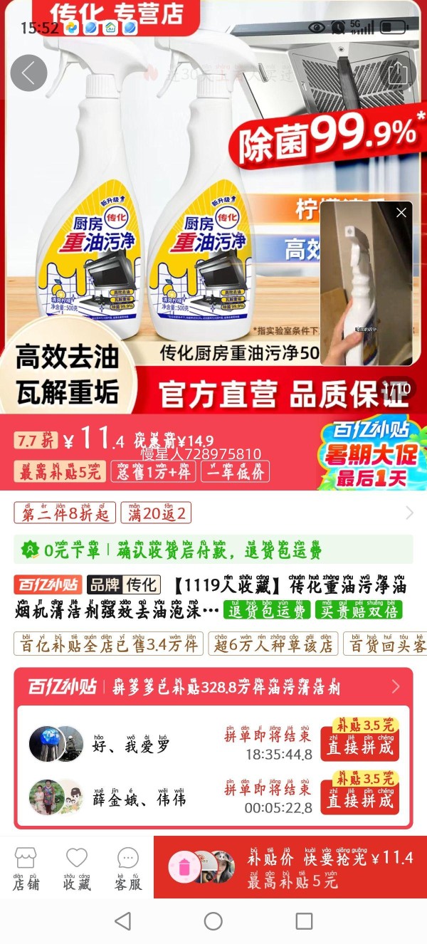 百亿补贴:油烟机清洗厨房去重油污除净灶台瓷砖泡沫型强力清洁剂神器