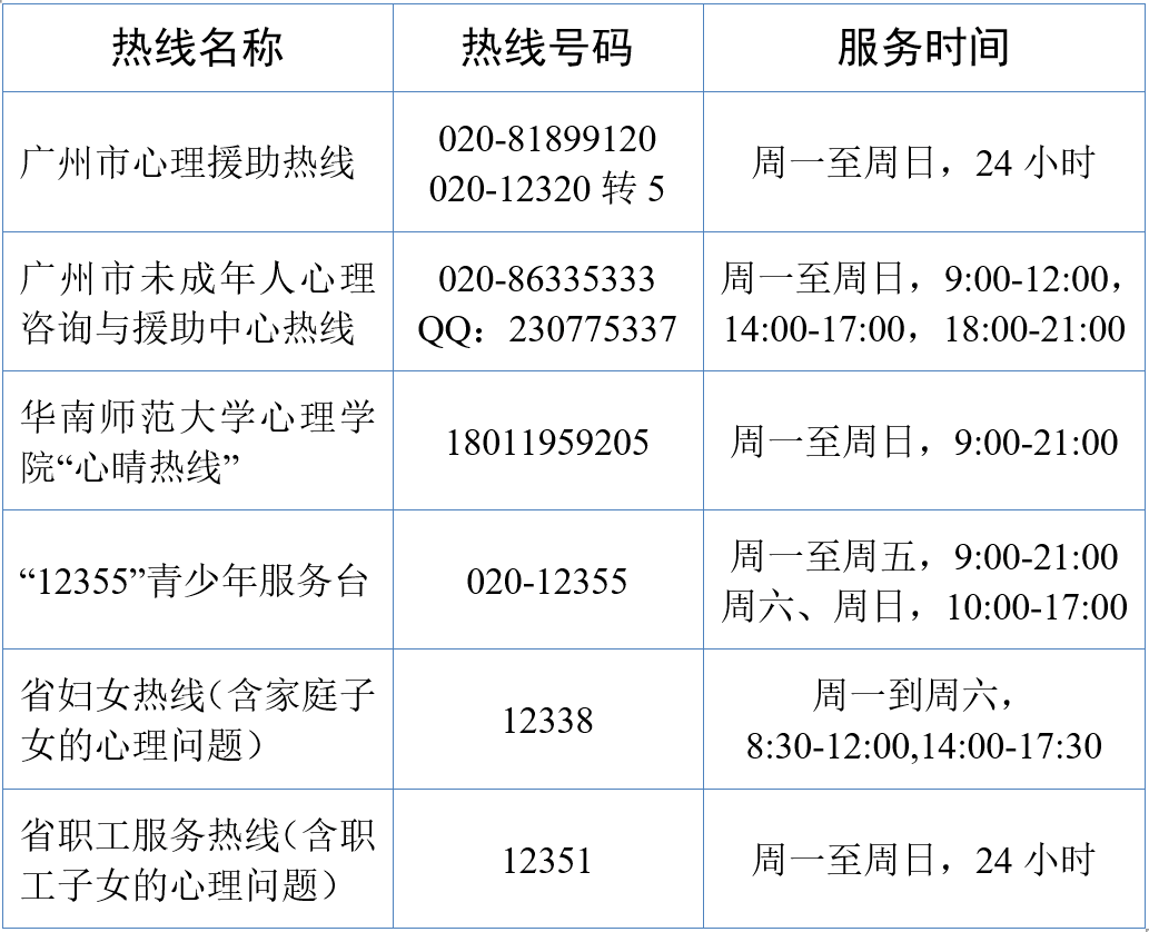 课程中提到当您发现自己或家人正在经历严重的情绪困扰,并且自行难以处理,可以拨打公益心理援助热线寻求更多的心理支援。在这里,我们为大家收集了部分公益心理援助热线。