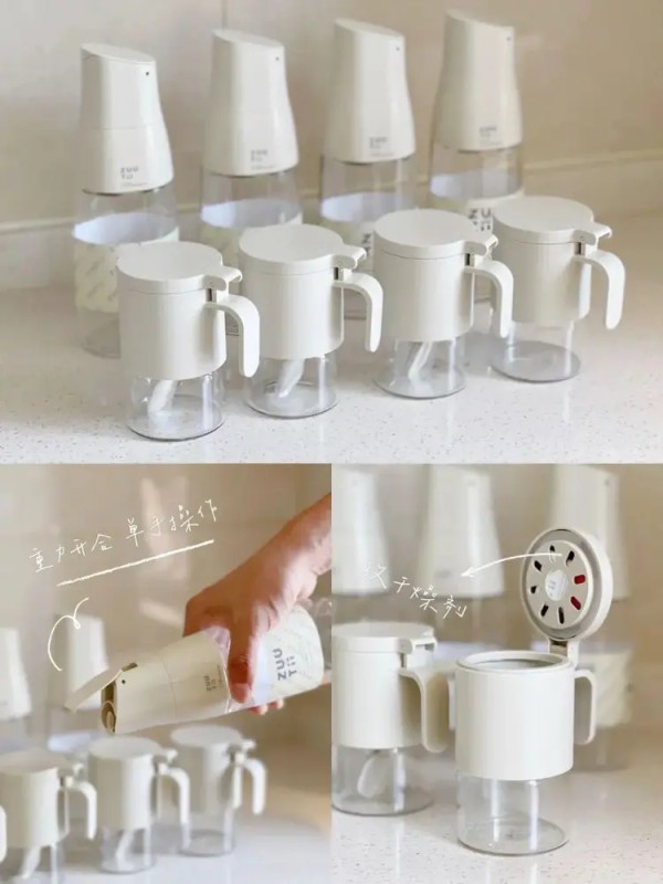 这些瓶瓶罐罐,盖子部分全部采用食品级ABS材质,融入曲率设计的硅胶出油口,倒油流畅不挂油。