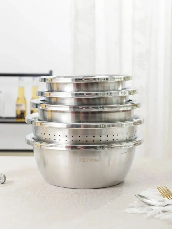 给大家推荐KEYIOW多功能不锈钢厨具5件套,食品级不锈钢,4盆1筛,满足厨房多需求!