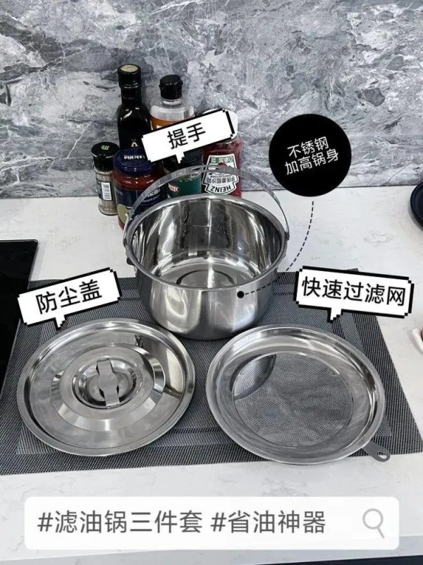 德国易铂yispot304食品级不锈钢猪油锅,炼油/储油/沥油,让吃猪油不麻烦,过滤无渣,冰箱储存,3升(约装5斤油)大口径轻松舀,自带提手,取放方便。搭配滤网,猪油过滤得干干净净,搭配防尘盖,不怕小虫和灰尘,可以当储油盆/油炸锅/汤锅/储物盆,多种用途!