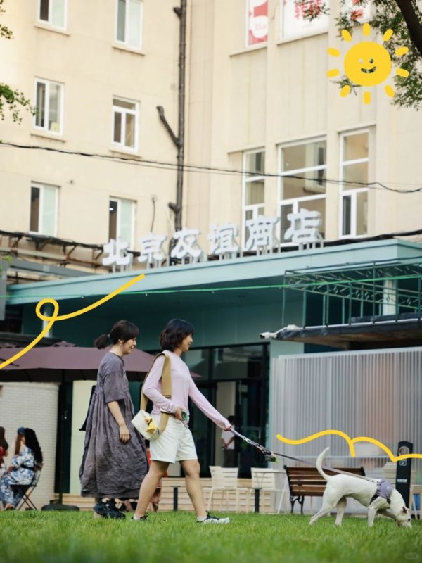 六十多年后,它拆掉后勤区的围墙,将一片草坪摊开在阳光下,竟然神奇地“长”出了许多年轻人。咖啡厅的外摆座无虚席,草坪上站满打卡的姑娘,连狗狗也有专属泊狗位,仿佛在宣告,这里的一切都是平等的:无论中国人或者外国人、人或者宠物,都是这片天地的主人。