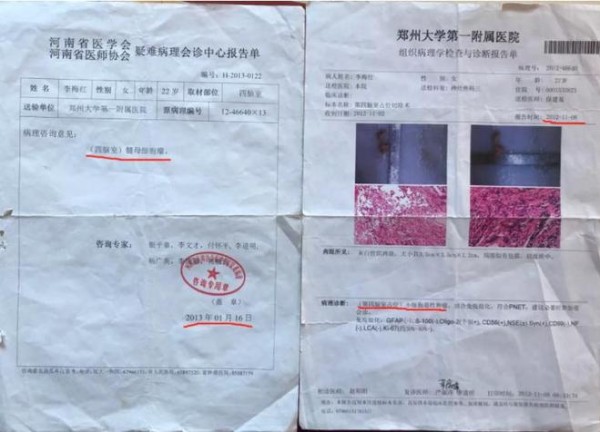 11月1日,在郑州大学第一附属医院,李梅红接受了第四脑室占位切除手术。手术前,这个懂医的姑娘甚至签下了遗体捐赠书。手术虽然顺利完成,但病理报告却让所有人都心头一紧:(四脑室)髓母细胞瘤。主治医生委婉地劝她的父母:"带孩子回家吧,这个病不管花多少钱,最终可能人财两空。"