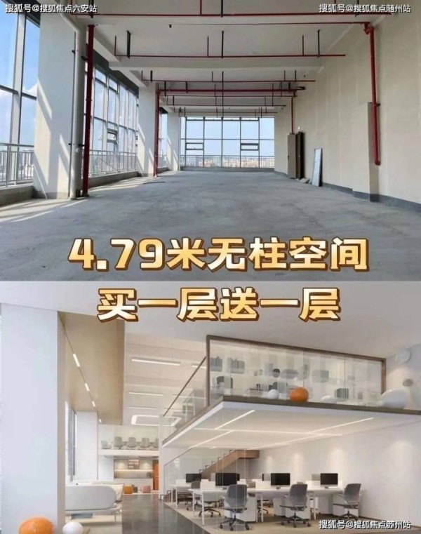 项目3号楼现房现售,实景交付,面积300-1250方灵活可选,单价21000-22000元/方区间。更具吸引力的是,其4.79米的层高设计,创新性地实现了“买一层送一层”的空间魔法,让企业在有限成本下获得加倍效能。