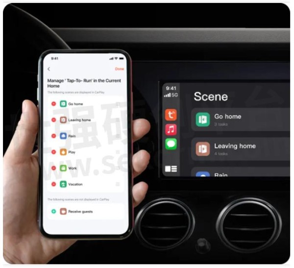 接入CarPlay和Android Auto后,回家途中,用户就能在车机上实时管控家中智能设备,到家之前轻松开启灯光、空调等场景模式。