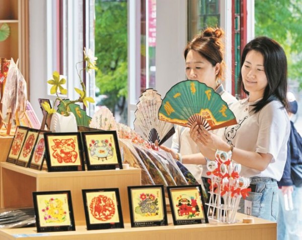 游客在“山海关礼物”直营店挑选心仪礼物。
