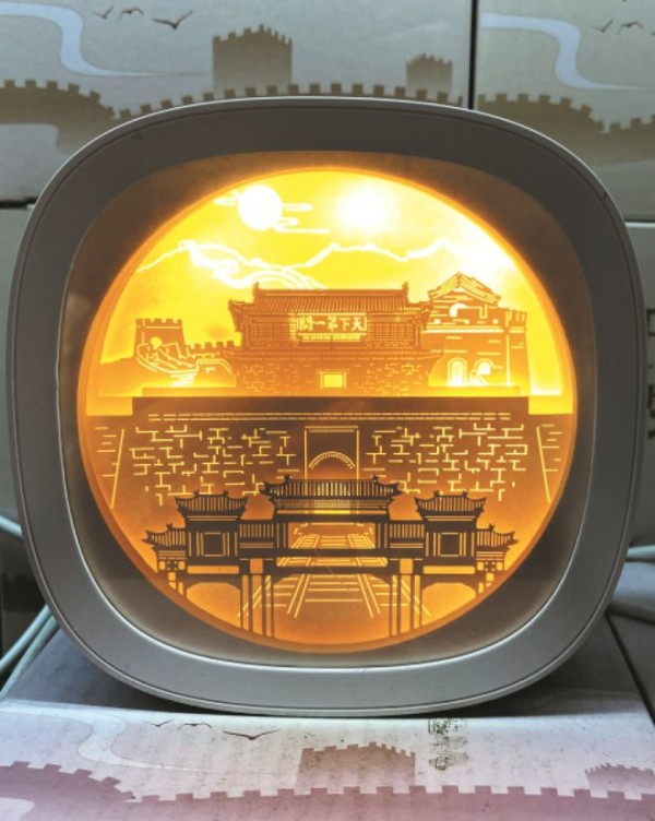 “这款纸雕灯采用传统纸雕的艺术手法,将山海关美景融入现代家居装饰中。未点亮的状态下,这是一件工艺品摆件。到了晚上灯光开启,光影呈现出明暗递进,天下第一关等古城景色就在光里‘站’起来了。”看到王梓涵如此好奇,“山海关礼物”东罗城店工作人员耐心地向她介绍。