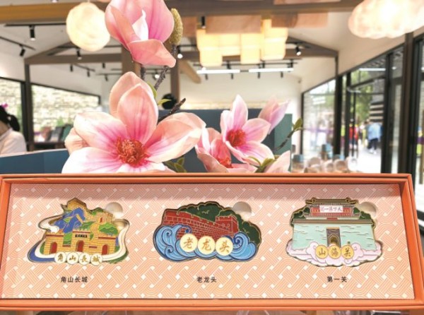 文具店里,印着长城敌楼的便利贴成了学生们的抢手货;菜市场旁的五金店,关隘造型的开瓶器摆在最显眼的位置;角山下,山海关中国长城博物馆的展柜里陈列的古老甲胄,与文创区的丝巾拥有同款纹饰——