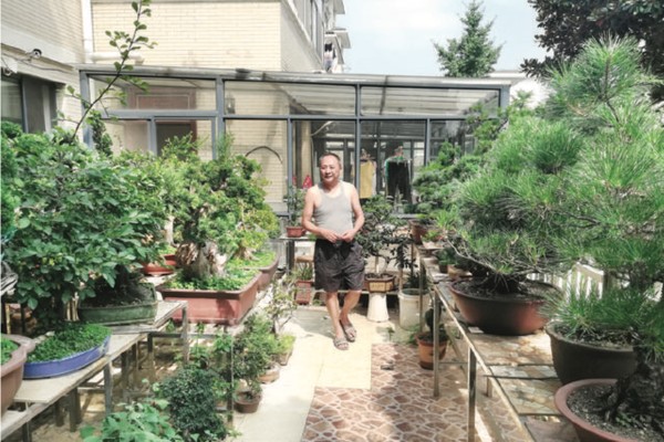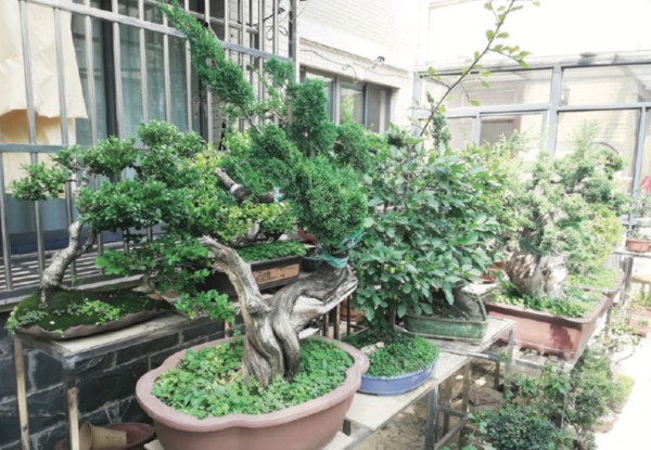 从宿舍搬到解放路上的五楼,由于空间的限制,王斌把养花的地点搬到了楼顶,可是由于地方小,养的兰花不容易活,而搞的盆景也没有起式。但是王斌弄盆景的念头并没有断过。家里条件好了,王斌又从仪征实验小学退休,王斌重新弄起了盆景。所以换房子的时候,王斌首要的考虑就是要有一个院子,挑来选去南洋尚城这套房子正合适。
