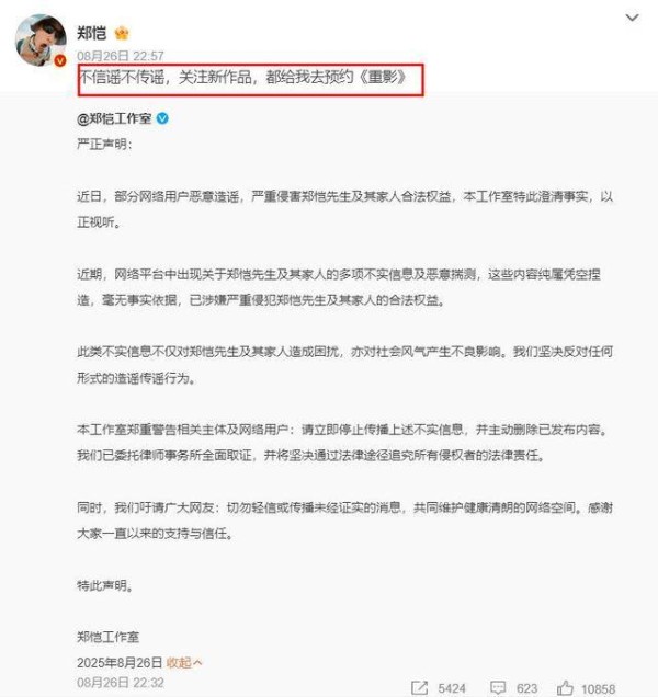 在苗艺博回应的同时,郑恺工作室也发布了官方声明,称网传信息“纯属凭空捏造”,并已委托律师取证,将通过法律途径追究造谣者的责任。声明中特别提到,郑恺和苗苗一家的生活模式是基于亲情和家庭需求,并非“经济剥削”。