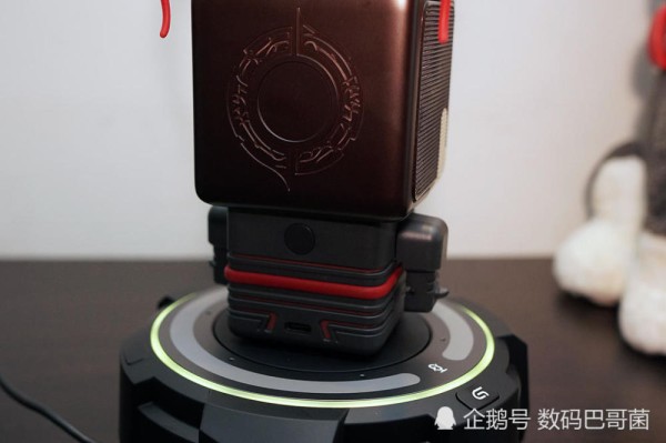要想真正玩转吕布智能机器人,AI底座其实还是很必要的。首先,可以看到游戏底座上拥有RGB LED光圈,它可以显示吕布游戏机器人的状态,进行对话时会频闪、游戏模式时会变成黄色,非常炫酷。
