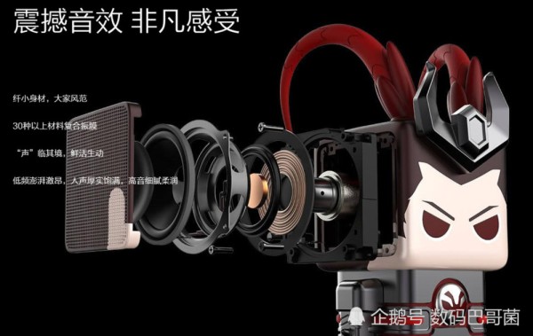 那么,扬声器在哪儿呢?答对了,就是吕布的“耳朵”。立体声扬声器集成在头部左右,巧妙又生动。别小看长着方脑袋的吕布,嗓门大着呢。