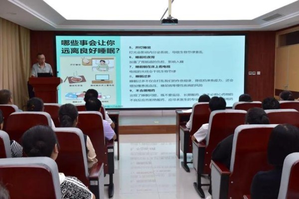 刘琦医师利用PPT的形式,系统讲解了睡眠的重要性、睡眠与健康的关系、影响睡眠的因素以及失眠对身心健康的危害,同时,结合生动的案例,深入浅出地阐述了失眠的非药物治疗—睡眠认知行为疗法在改善失眠过程中的作用,还向大家传授了一系列改善睡眠的放松技巧,包括创造适宜的睡眠环境、养成良好的睡眠习惯、坚持健康饮食与适量运动,以及做好心理支持与精神调节等。