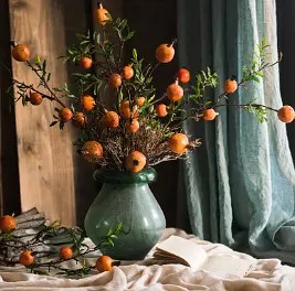 掬涵 仿真石榴果树枝 插花假花客厅摆设装饰绢花仿真花假石榴摆件