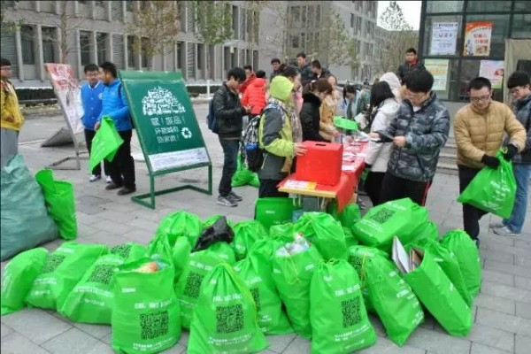 活动之初,工作人员在臻园及老食堂门口分发旧物收纳袋,让同学们收集本宿舍的各类废旧物品。凡是参与活动并且废品数满一袋的寝室都能参与抽奖活动,活动奖品包含了各种宿舍用品以及各类励志和人文类书籍。最后参与活动的同学在倡议横幅上签字留念。
