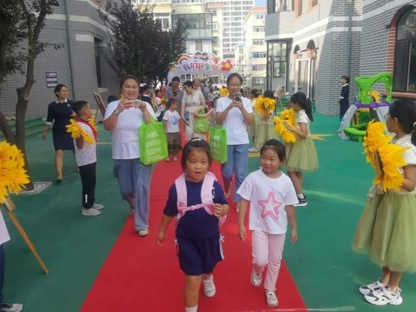 在全场的期待中,各班班主任将写着祝福与鼓励的小红花逐一送到孩子们手中。随后的亲子互动环节家长们纷纷与孩子拥抱、亲吻、击掌,一个个温馨的瞬间,不仅传递着亲情,也让孩子们更勇敢地迈出了融入新环境的第一步。?