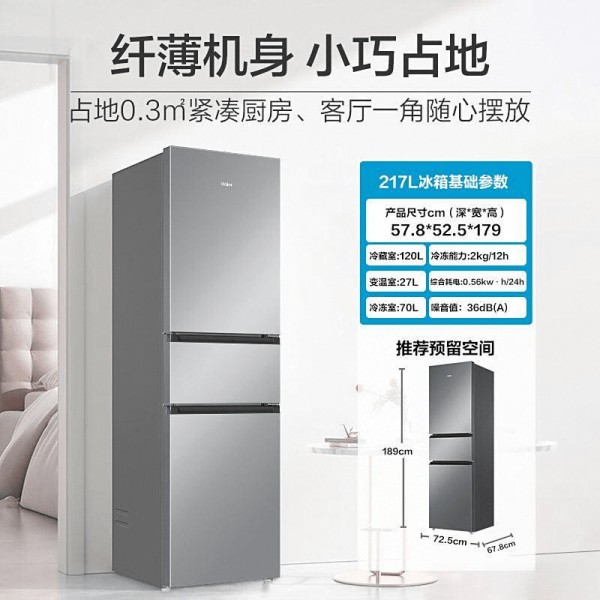 推荐二:海尔迷你三开门电冰箱BCD-217WGHC3E9S9
