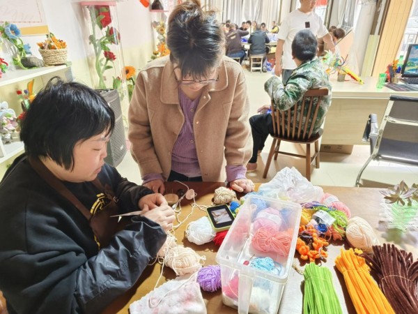 太平乡残疾人之家组织精神、智力及重度残疾人集体创作扭扭棒文创产品,参与者通过缠绕、拼接等手法,将普通扭扭棒转化为色彩缤纷的花束、挂饰与卡通摆件,作品充满童趣与想象力。该机构负责人介绍,制作文创作品不仅帮助残疾人锻炼手脑协调能力,更通过售卖的方式为其增加收入,助力实现“精神共富”与“物质增收”双赢。