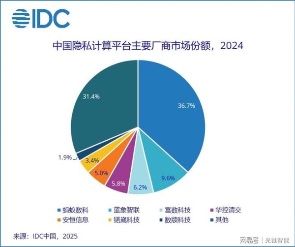 8月14日,国际数据公司IDC发布了《中国隐私计算平台主要厂商市场份额,2024》,报告显示,2024年,中国隐私计算市场规模达到9.8亿元,同比增长10.1%。其中,蚂蚁数科以36.7%的市场占有率位居首位,这也是蚂蚁数科连续第三年位居中国隐私计算市场份额第一。