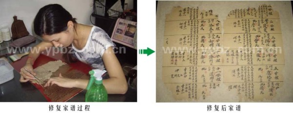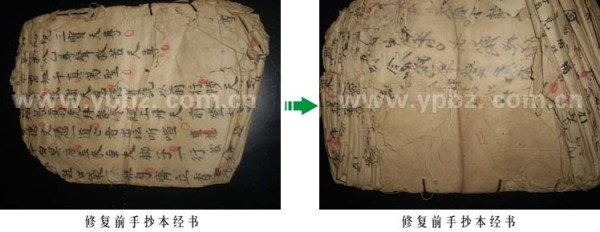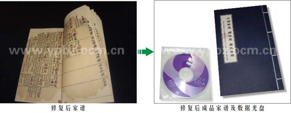 近日,经过公司古籍修复中心的努力,一套私人珍藏的家谱、经书得以修复保存。这套家谱、经书年代久远,已经面目全非,公司技术师傅在采用了专业的药剂对其进行去尘、杀菌、除虫、防霉、脱酸等的科学处理后,再精心修复,最后对修复好的家谱、经书进行了数字化并刻录数据光盘,得到了客户的高度认可。修复前后对比图如下: